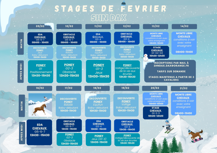 Vous trouverez le planning des stages des vacances scolaires et autres activités.